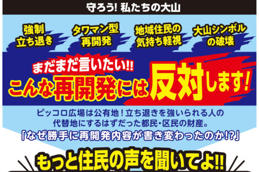 まだまだ言いたい! こんな再開発には反対します! ・立ち退き強制 ・タワマン型再開発 ・地域住民の気持ち軽視 ・大山シンボルの破壊 ピッコロ広場は公有地!立ち退きを強いら ...続きを見る